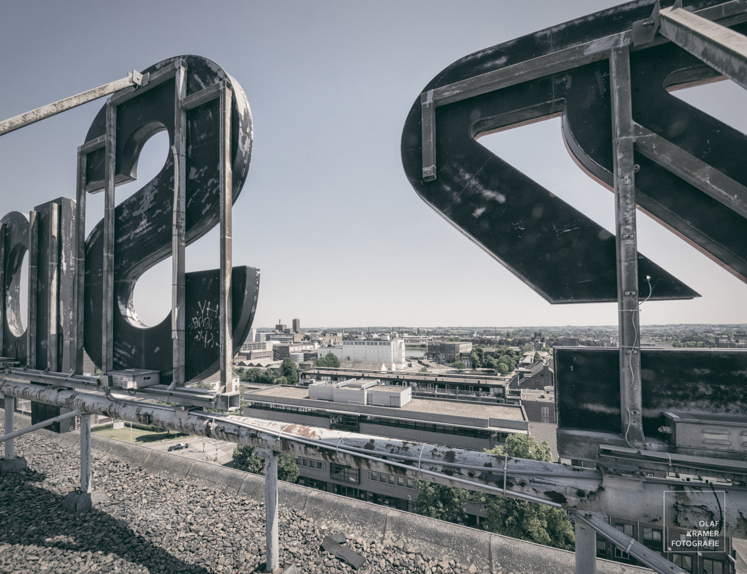 De Sphinx fabriek te Maastricht, met onder meer het industriële monument 'Het Eiffelgebouw', ook wel 'De Eiffel' genoemd, in de periode voordat het verbouwd werd.